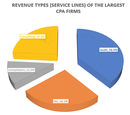 While the largest 4 firms in the accounting services industry earn 34.7% of industry revenue, the 52,336 smallest firms earn an average of about $97,000 annually, or about 18% of industry revenue.